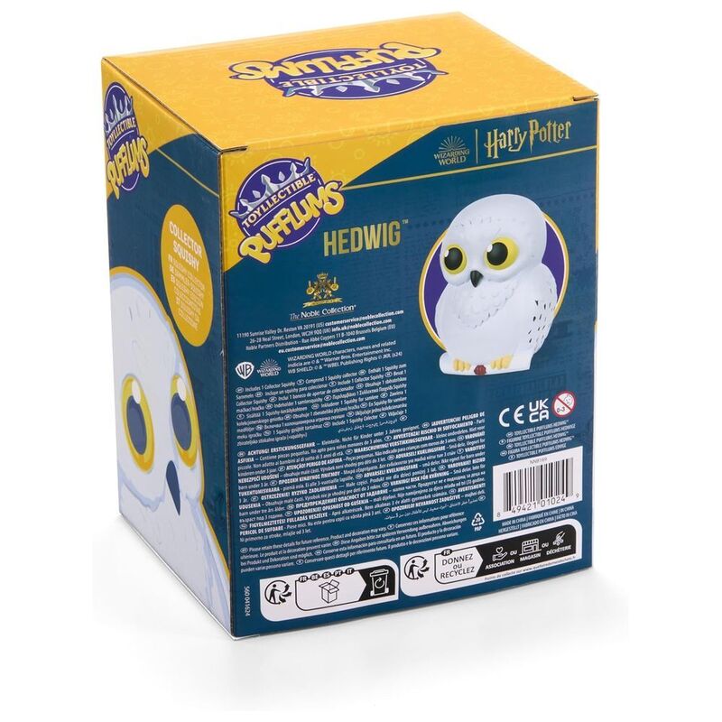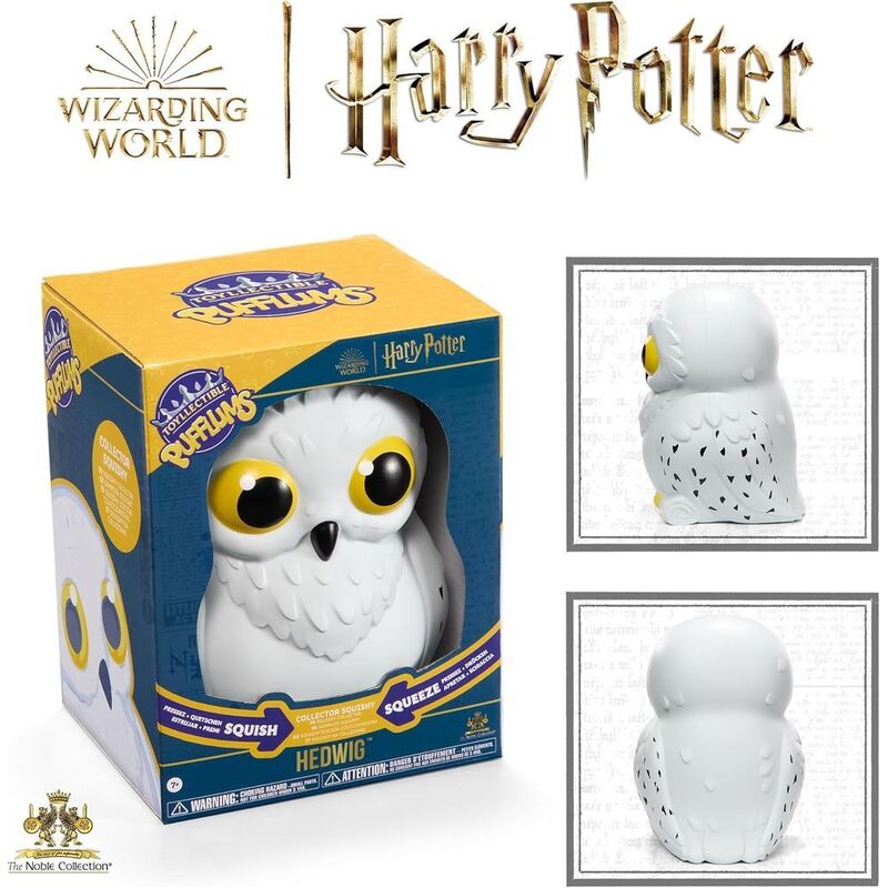 - The foam Hedwig is presented as a charming snowy owl, holding a scroll in her claws.
