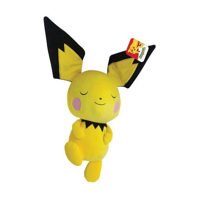 Choose to snooze with Pichu, the Tiny Mouse Pokemon. This supersized plush rounds out at 18-inches and is splayed in a unique sleeping posture. It's also super soft and made with unique material that's perfect for cuddling. After a long day of Pokemon training, Pichu will be ready to nap. Officially licensed Pokemon product from Jazwares.