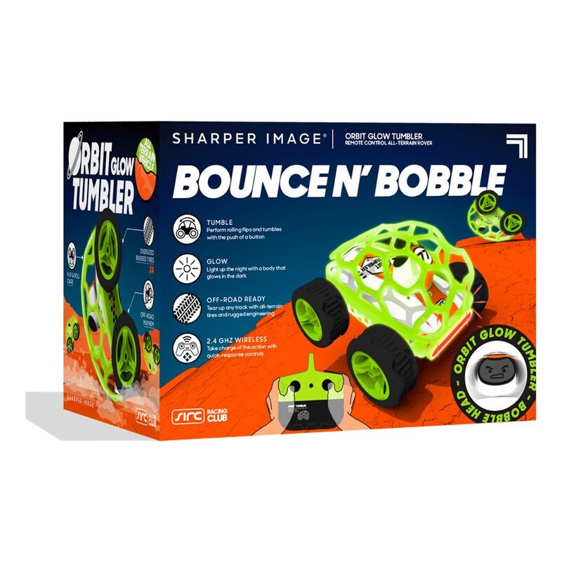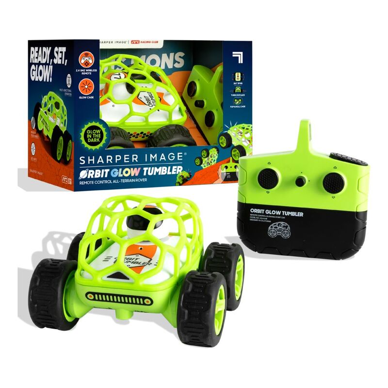 • Rule the road and turn heads wherever you go with the Sharper Image Orbit Glow Tumbler RC Car! Be amazed by the vehicle's sleek, eye-catching design, lighting speed, and extreme maneuverability.