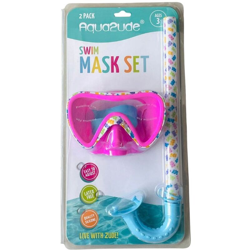 Turn every swim into a sweet adventure with the Aqua2ude Gummy Bear Mask and Snorkel Set in Pink! This playful set features adorable gummy bear details and a candy-colored finish that makes it as fun to wear as it is to use. Crafted from soft, latex-free silicone, it offers a comfortable fit that's gentle on young skin, while the adjustable straps make it easy to secure for kids ages 3 and up. Whether they're snorkeling in shallow waters or simply playing at the pool, this charming set is perfect for making a splash with style. Dive in and live with 2ude-gummy bear style!