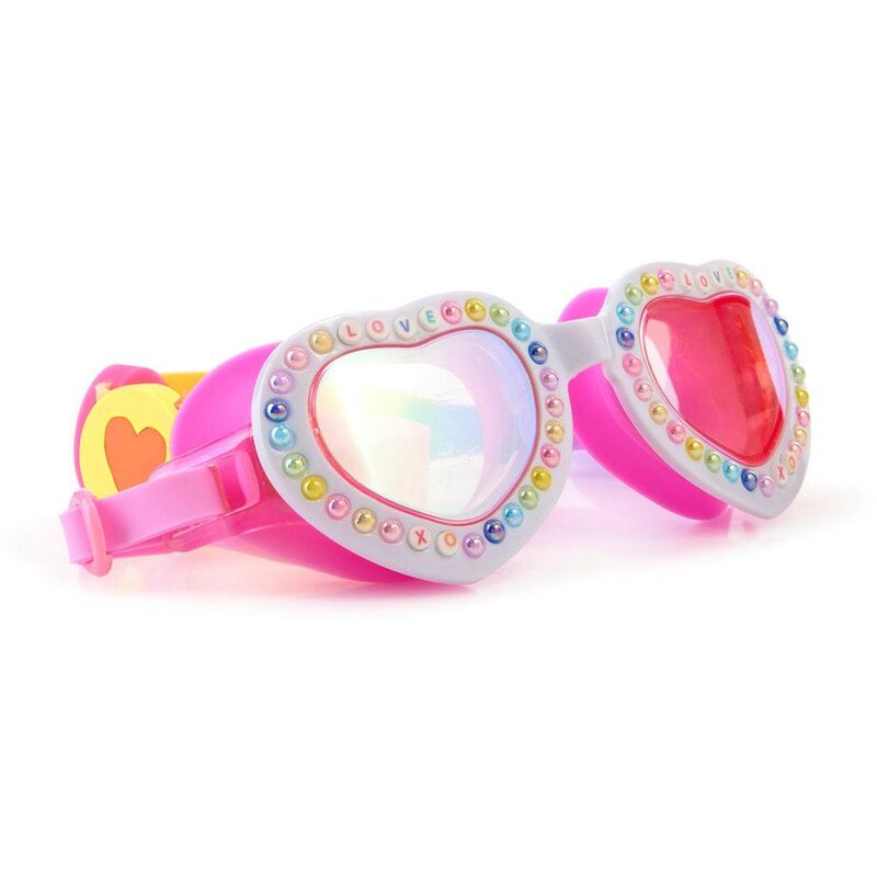Bling2O Charmed Pearl Crush Kids' Swim Goggles White Heart Frame With Pearls