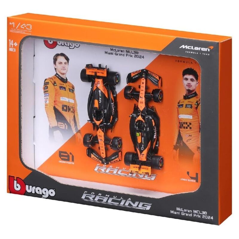 Bburago Formula 1 Mclaren Team 2024 2 Pk Mcl38 1.43 Without Helmet & Plastic Stand Die Cast