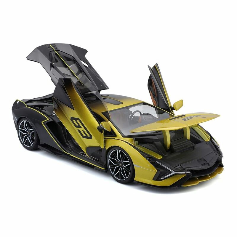 Bburago Lamborghini Sian FKP 37 - A first-class super sports car Perfect driving fun and fantastic handling are at the top of the list at Lamborghini. The Lamborghini Sian FKP 37 is in no way inferior. True to the original and with a love of detail! The collector's car is manufactured using a metal injection moulding process and refined with plastic parts. Its yellow and black unmistakable silhouette and movable bonnet, trunk and doors all look like the original on this model. A must for every collector and an eye-catcher for the showcase!