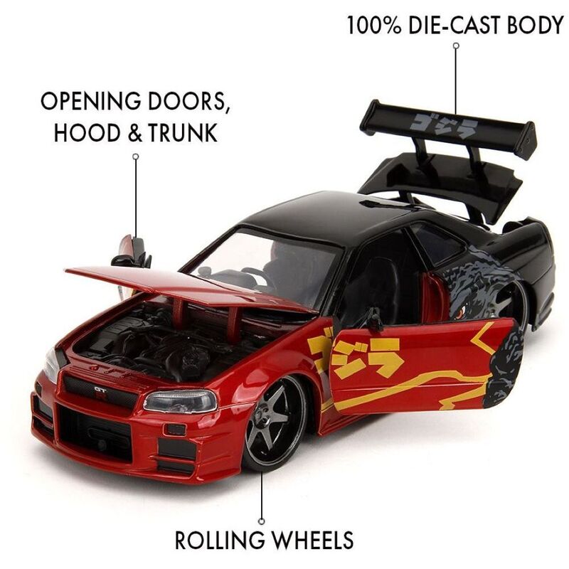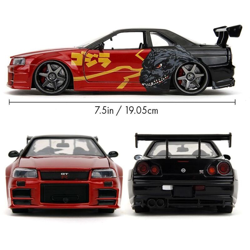 Jada Toys Godzilla 2002 Nissan Skyline Gt-R R34 Diecast Model Car 1.24 Scale
