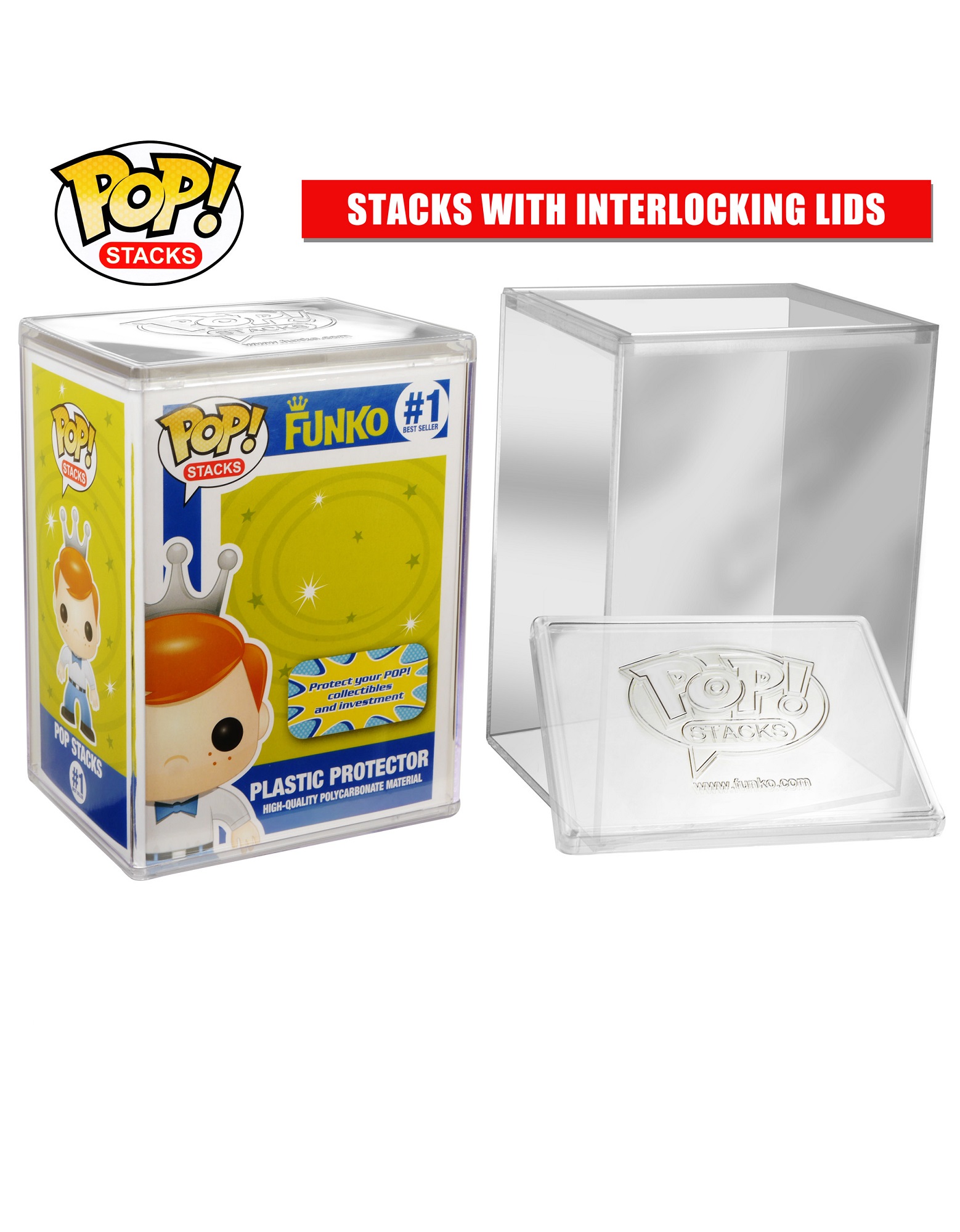 واقي ممتاز من بوب! وهذا الواقي مصنوع من البلاستيك الصلب ومصمم للتشابك والتداخل بحيث يمكن تكديس المجموعات فوق بعضها البعض بسهولة وأمان. كما يحمل الغطاء شعار بوب! ستاكس .