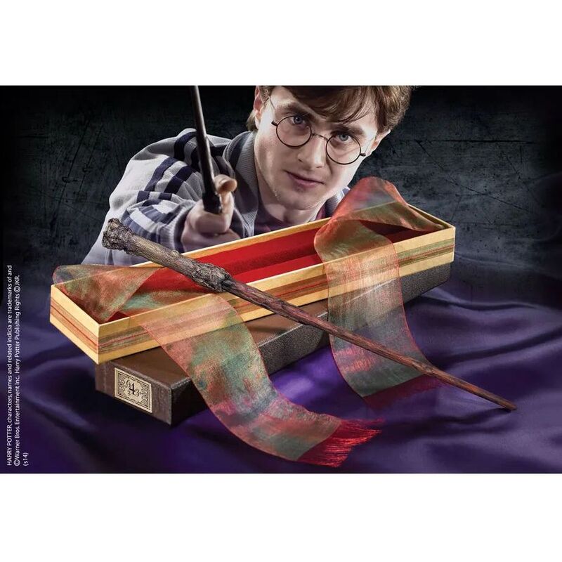 The wand that chose Harry Potter, the Boy Who Lived, when he visited Ollivanders Wand shop aged 11. Complete with Ollivanders box, with velvet-feel material and a decorative ribbon. Name clip not included. Wand measures approx 35.5cm.