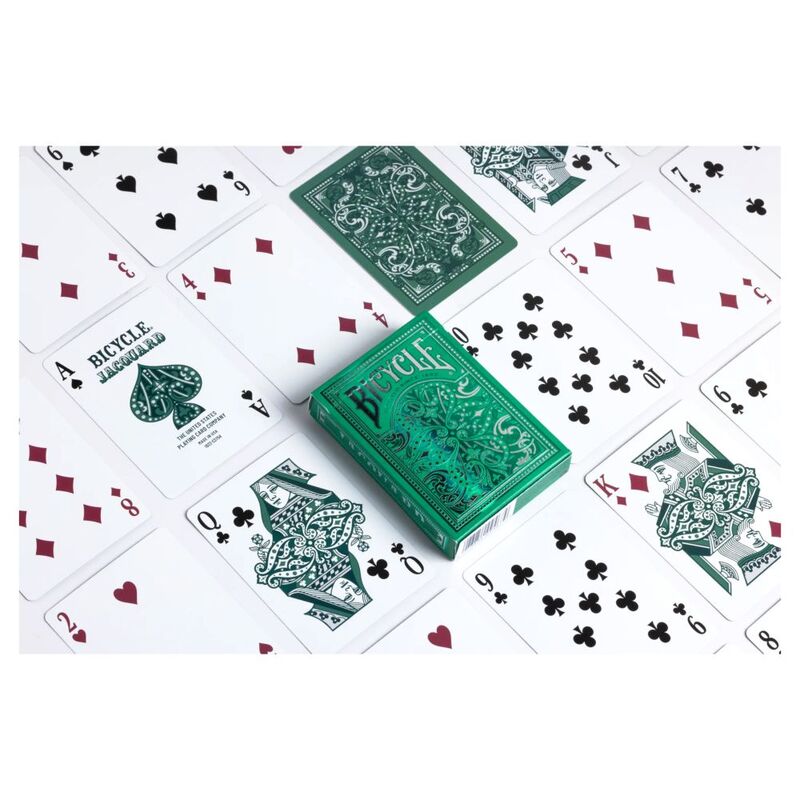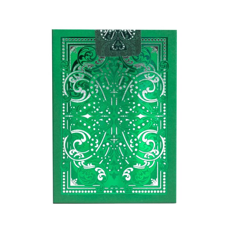 Bicycle Jacquard gets its design inspiration from complex, ornate patterns often woven into fabric resulting in beautiful displays. The Bicycle Jacquard tuck case features emerald green and silver foil details woven throughout creating a dazzling and dramatic appeal.