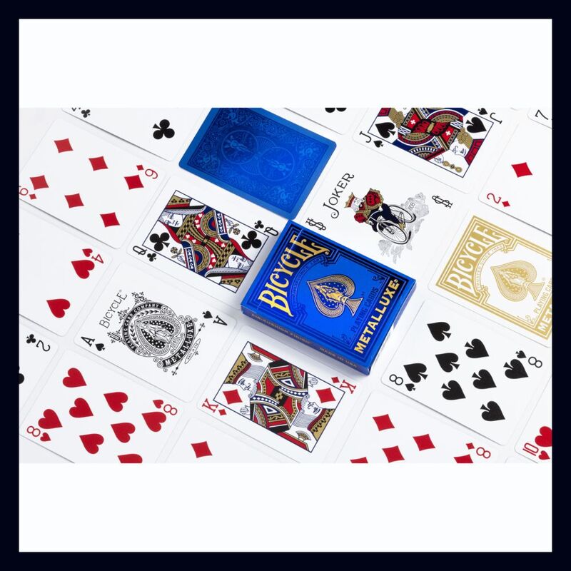 Enhance your card games with Bicycle Metalluxe Playing Cards. These premium cards feature a stunning blue metal foil finish, adding a touch of luxury to your gaming experience. Crafted with premium quality cardstock, they feature an Air Cushion Finish for effortless shuffling and seamless handling, enhancing your overall gameplay and providing a professional playing experience. These cards are not only perfect for various card games, such as poker, bridge, and blackjack, but also for performing captivating magic tricks. Perfect for collectors, the eye-catching metal foil design makes them a standout addition to any playing card collection. Upgrade your game night and enjoy endless hours of entertainment.