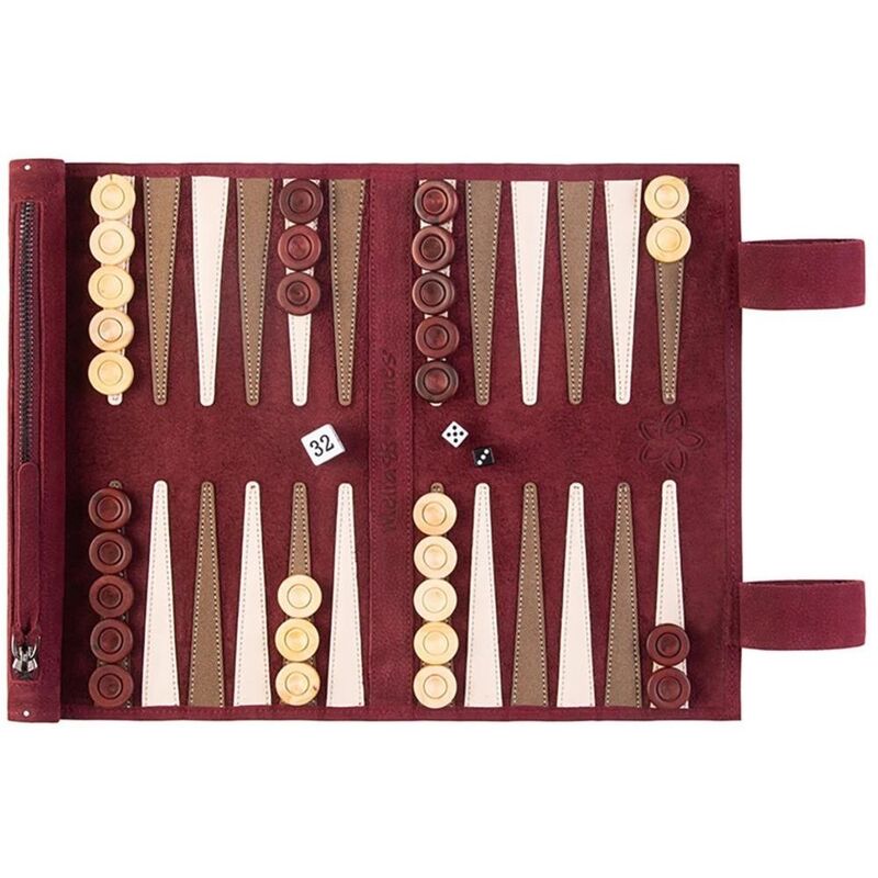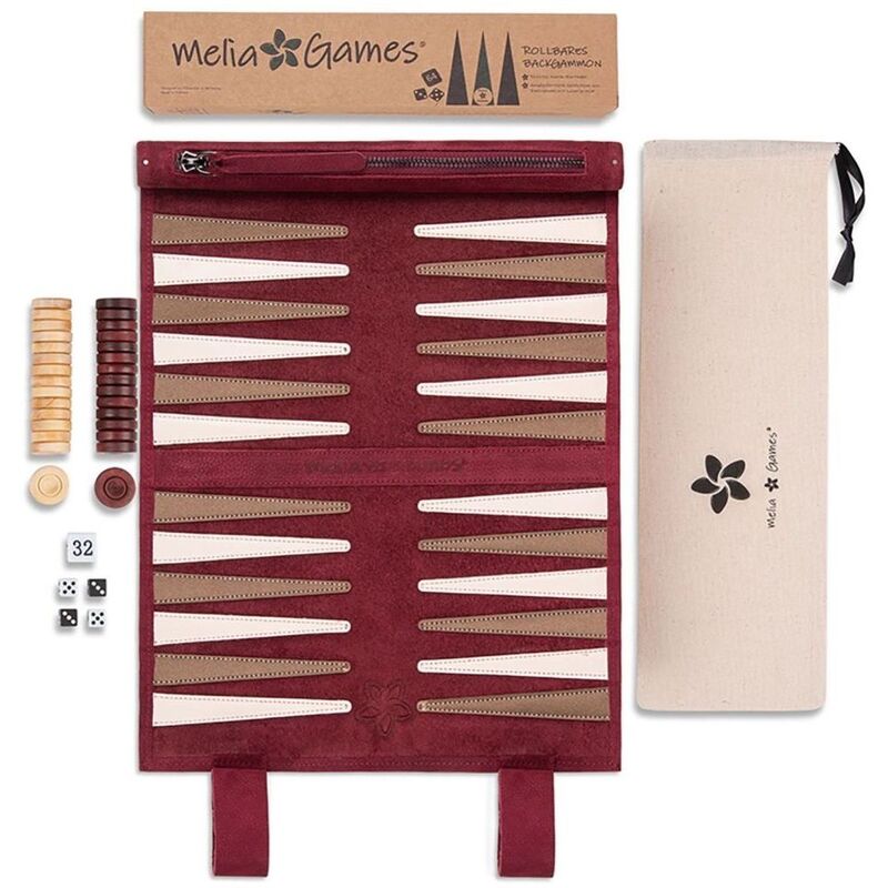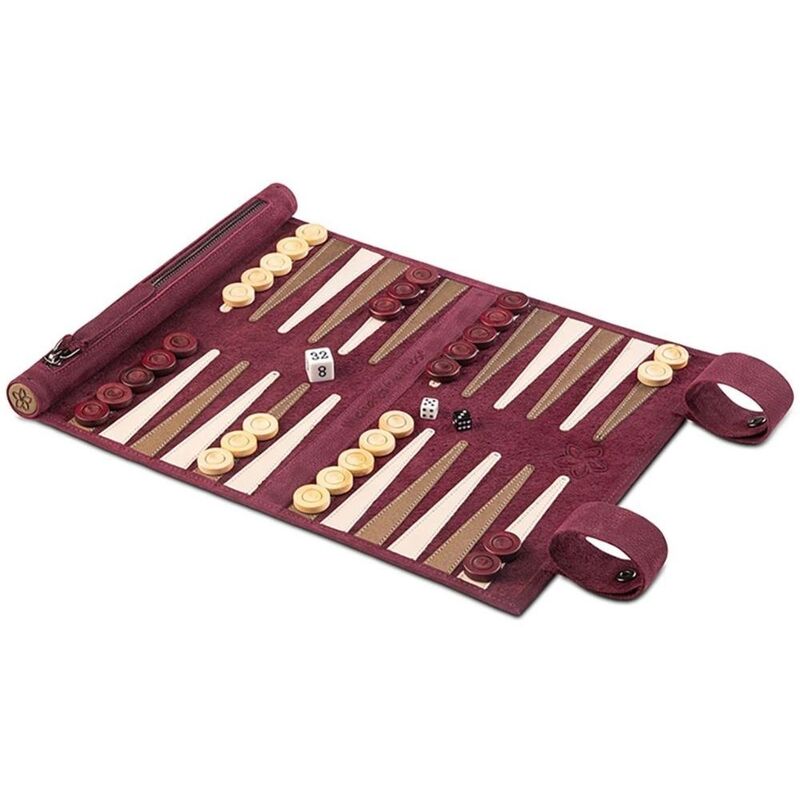 Melia Games Backgammon Travel Roll Up Leather Set - Bordeaux