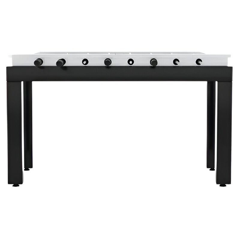 Bilhares Carrinho Matraquilho New York Semi-Commercial Foosball TableTable soccer with a modern and essential style made by a supporting structure in stainless steel or iron powder coated black in the legs and white RAL 9016 in the upper part and finished in the upper part in wenge color. The table soccer model from New York is made to furnish with style in any environment. This authentic object of design is realized with polychromed little men and exiting or telescopic poles, and on request, it can be realized in any color or wood essence.