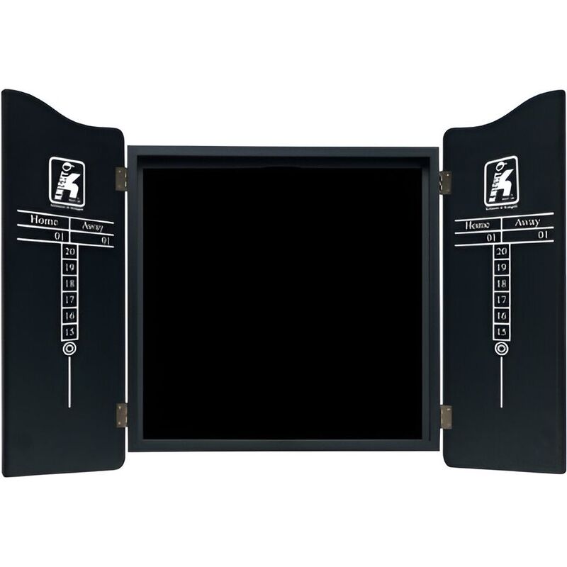 This Dart cabinets from Knight Shot is designed to hold your dartboard ready for play, and the doors provide a convenient space to keep score. While not in play, the doors may be closed to hide the board - adding beauty to any room. The cabinet is equipped with quality hinges making the doors adjustable. Dartboard not included.