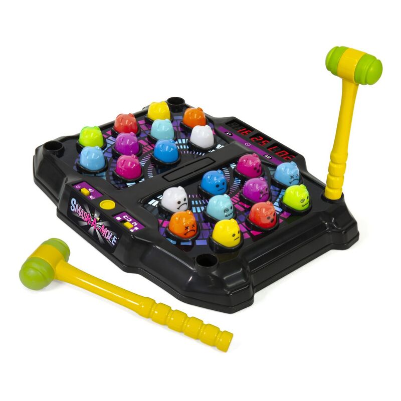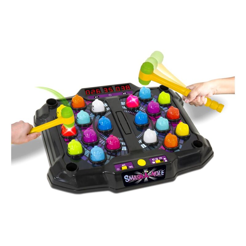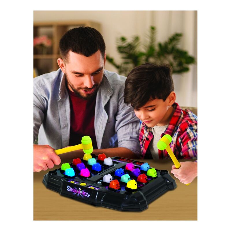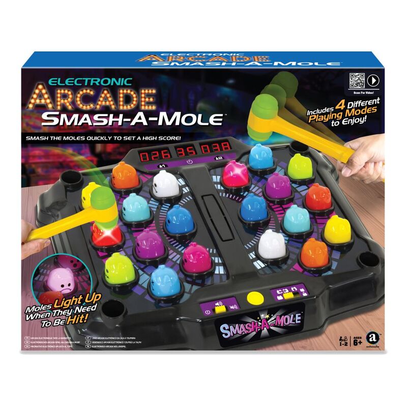 Bring the thrills and excitement of the Arcade right into your own home! The smash-a-mole game is an all-time arcade favourite. This home use version offers all the fun of the arcade one, but with even more playing functions and features to enjoy! The large playing board features 10 colourful moles per side, each with a funny facial expression. As the moles light up quickly smash them with your mallet to score! There are 4 different playing modes to keep you entertained. First play in single player mode using 1 side of the board, and advance through the levels by hitting enough moles before the time expires. Once you've succeeded you may shift to 'master' mode, smashing moles on both sides of the board! Then challenge a friend to head-to-head competition in which each of you hits the moles on 1 side of the board, trying to accumulate as many points as possible in 60 seconds to win. Finally, play the mole memory game where you need to hit the moles in the same sequence as they light up! Features music, sound effects, and a large LED scoreboard. Requires 4 x AA batteries (not included).
