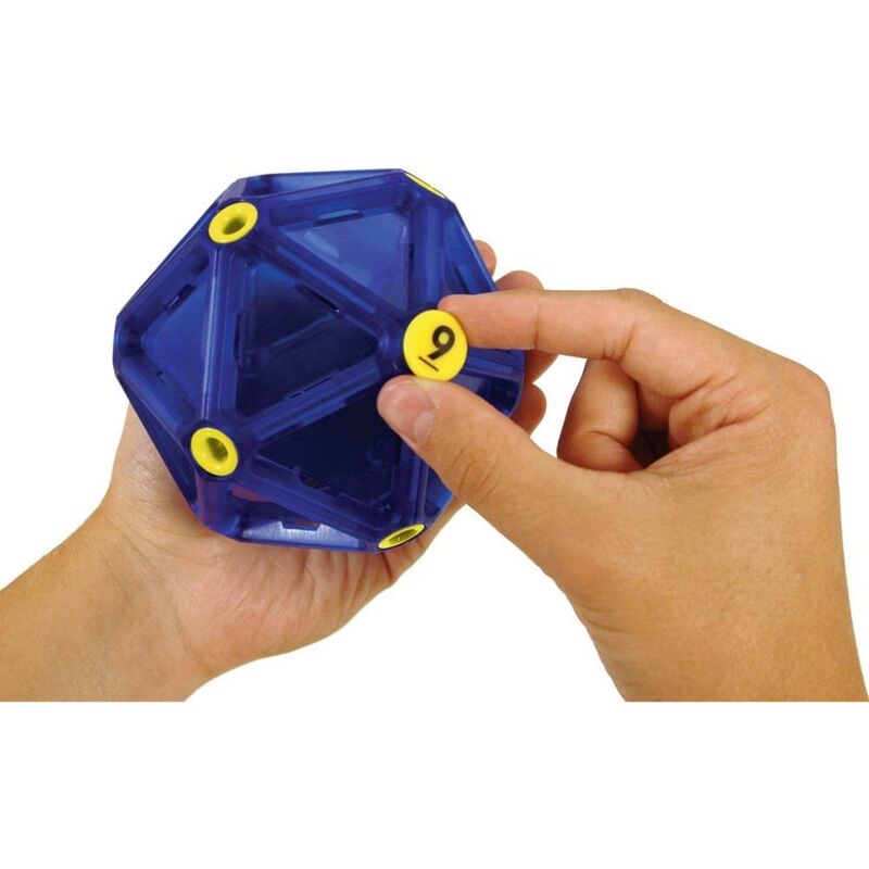 Place the number tiles in random slots, then match the number of dots on all five intersecting triangles to each tile. All done, right? Not so fast. Now you can build your next challenge - simply swap a few number tiles and the game continues! Remember: a solution is always just around the next twist. With the perfect geometry of an icosahedron, Icosoku can be solved every single try!