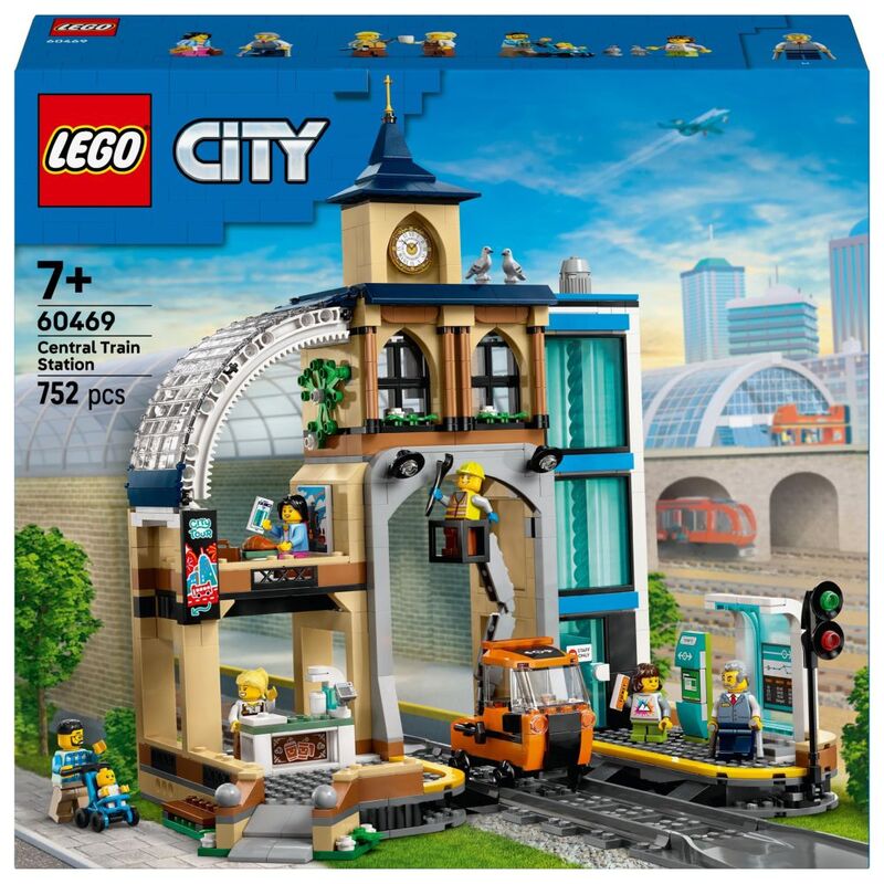 This LEGO® City Central Train Station (60469) construction toy for ages 7 and over is packed with cool features for imaginative play across 3 levels. Topped with a classic clock tower, the toy station includes a cosy coffee bar, working lift, control room, bus stop, 2 passenger platforms, a timetable display and a ticket machine. Kids also get a railway maintenance vehicle with a cherry picker, plus 6 minifigures, a baby figure and 2 pigeon figures for role play and storytelling.