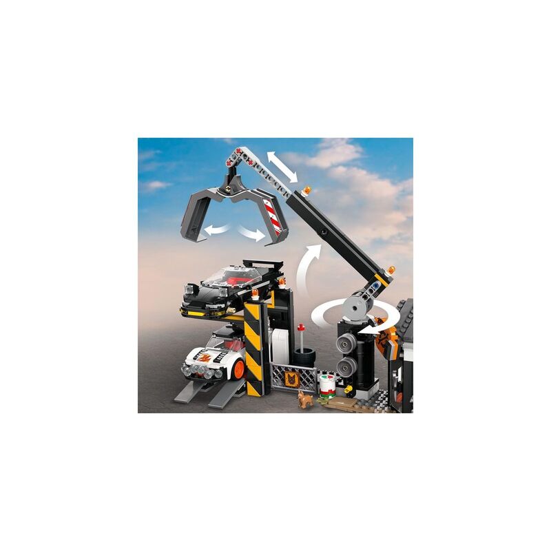 - What’s in the box? – This LEGO® junkyard toy includes everything kids need to build a toy scrapyard with a claw crane, crusher, office building, 2 cars and 4 worker minifigures