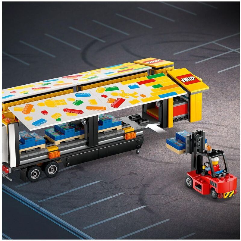 - A toy vehicle for LEGO® enthusiasts – Kids can open the side panels of the LEGtruck’s trailer and use the forklift tload the pallets of toy LEGsets intthe cargbay