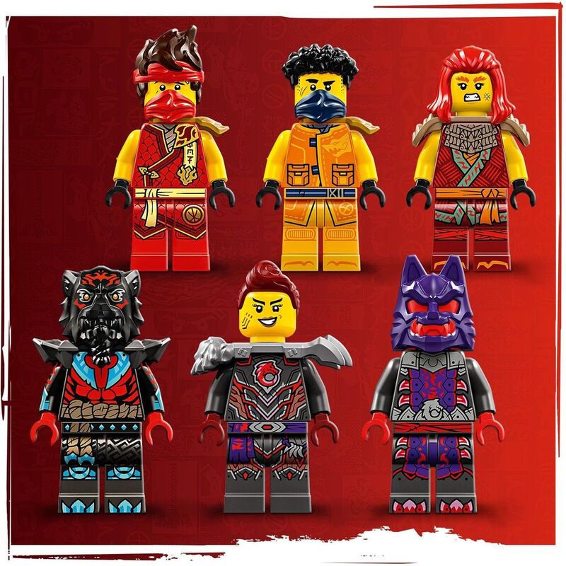 • 6 NINJAGO® minifigures – Ninja playset includes ninja warriors Kai, Wyldfyre and Arin, plus villains Lord Ras, Jordana and a Wolf Mask Warrior, all armed with weapon accessories