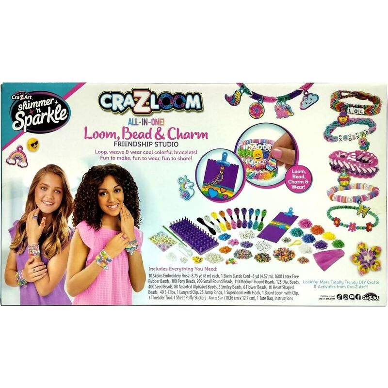 Introducing the CraZLoom All-in-One Loom Bead & Charm Friendship Studio! This set includes 1600 looms and over 1000 beads, providing endless creative possibilities. It's perfect for making friendship bracelets and charms. Recommended for ages 8 and up.