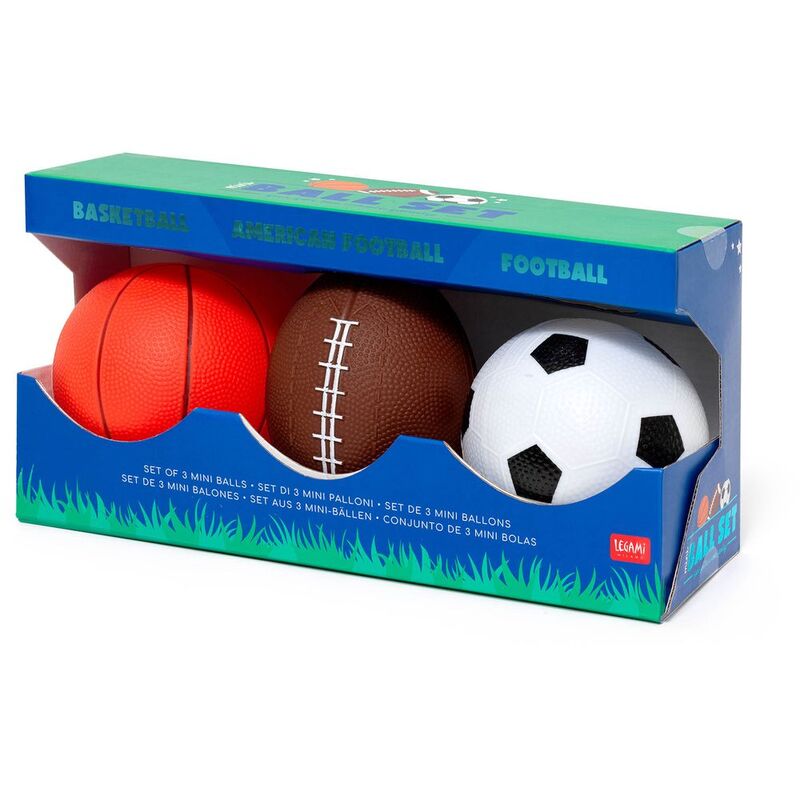 Legami Mini Ball Set - Basketball/American Football/Football (Set of 3)