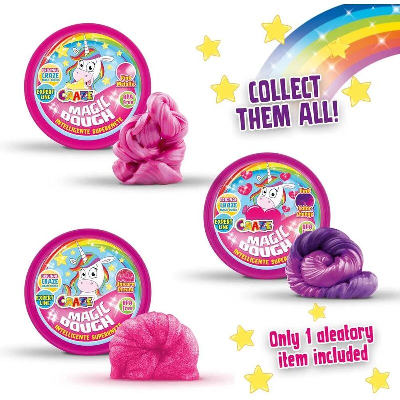 The CRAZE MAGIC DOUGH Expert Unicorn intelligent super dough is the new great play fun with fun factor! It is extremely elastic, very easy to shape, bounces like a bouncy ball and shatters. The intelligent MAGIC DOUGH by CRAZE can not only be kneaded and shaped, but also cut and torn. The dough remains supple and does not dry out.