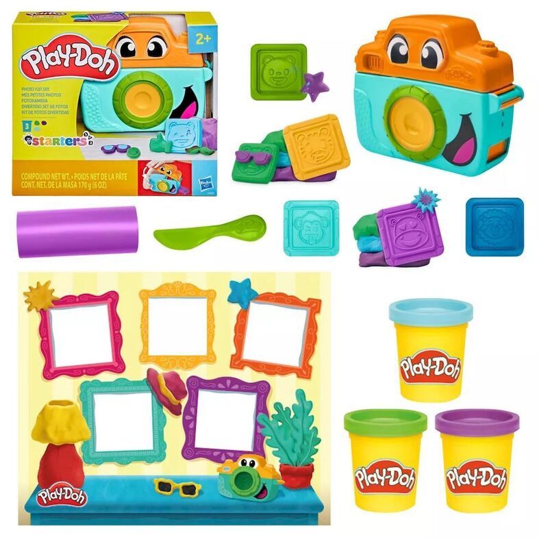 Capture a wild world of faces and feelings with the Photo Fun Play-Doh starter set! The pretend camera squeezes flat Play-Doh strips to look like film and then kids can use the 5 animal face stampers to create pretend portraits. Customize the animal faces with silly molds like mustaches, hats, glasses, and more. Imaginative play activities for kids get even more colorful with 3 Play-Doh cans and 2 ounces of each color. Preschool toys like this Play-Doh starter kit help encourage kids to explore social-emotional and fine motor skills. Whether they're beginners or Play-Doh pros, it's a great kids gift or addition to your sensory toys for 2 year old girls and boys and up.