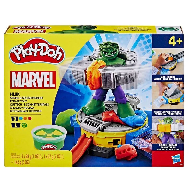 - Put the play power in kids’ hands with this Play-Doh Marvel toy set! Create Play-Doh trucks, tanks, and more and SMASH them with the Hulk figure in his power suit.