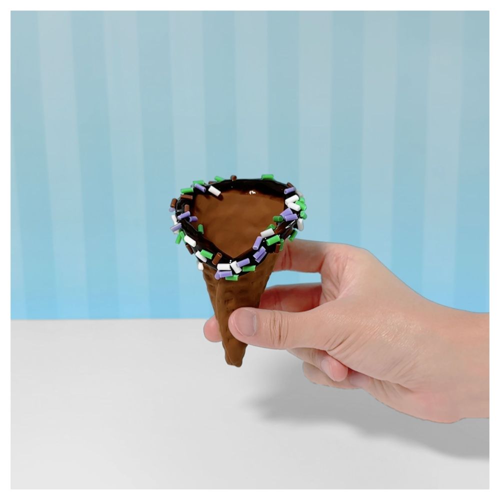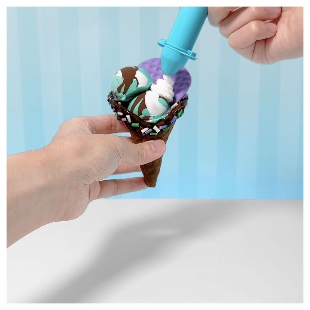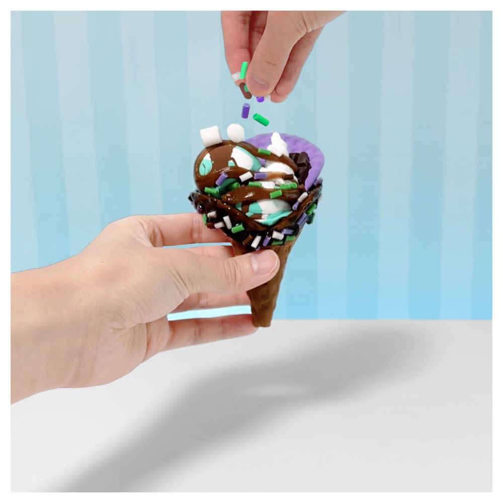 Scoop, swirl, and sprinkle your way through the Slimy Gelateria Crush Cones, a delightfully scented DIY slime dessert set packed with unique types of slimy fun and all the trimmings of a real ice cream shop! Mix up your own waffle dough, add sugary slime syrup, then top it with marshmallows, sprinkles, and chocolate pieces using your cream dispenser and scoop. With a sweet scent and a soft, squishy texture, this safe and mess-free playset is perfect for slime lovers, dessert dreamers, and mini master chefs alike. Comes in an assortment of 2 cones, each one ready to be customized, crushed, and adored!