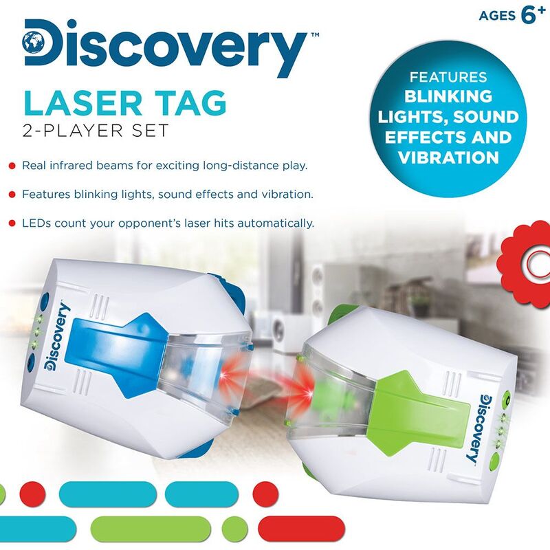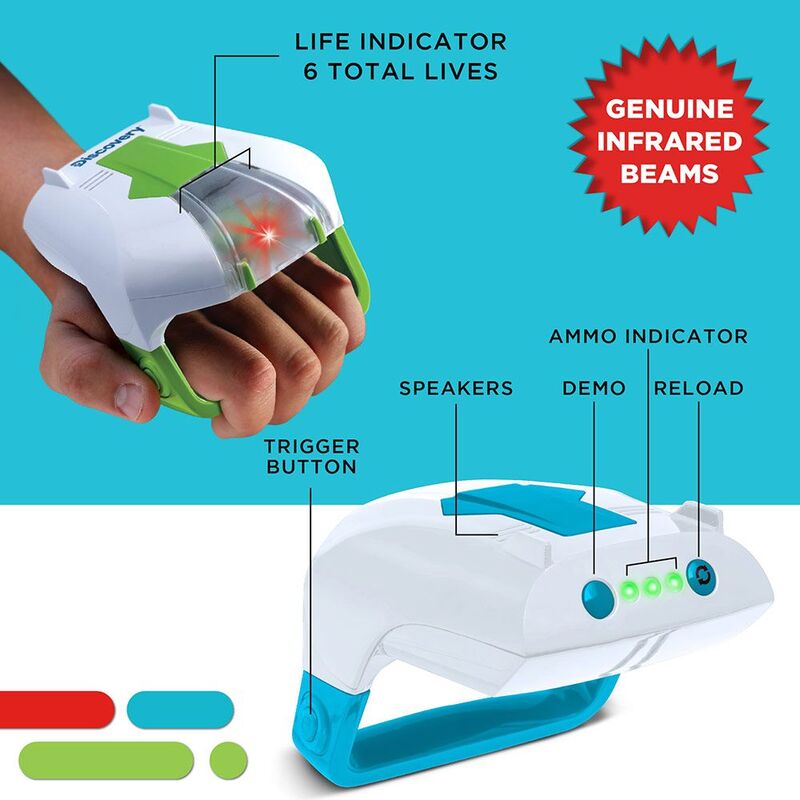 The laser blaster's grip keeps it securely in the child's hand. Point tracking for competitive play. Fun light, vibration, and sound effects.