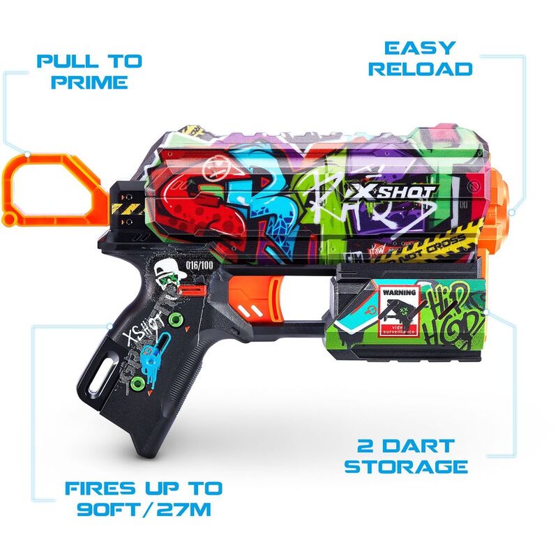 - Steet Battle Pack: Using a new state of the art printing technology, X-Shot Skins is the first custom designed blaster that brings the in-game experience of skinning your blaster to the battlefield. The X-Shot Skins Last Stand Double Flux Combo Pack includes 1x Last Stand and 2x Flux blasters decked out in Graffiti skins, perfect for a tagger or anyone wanting to battle it out street style! Choose different, choose X-Shot Skins.