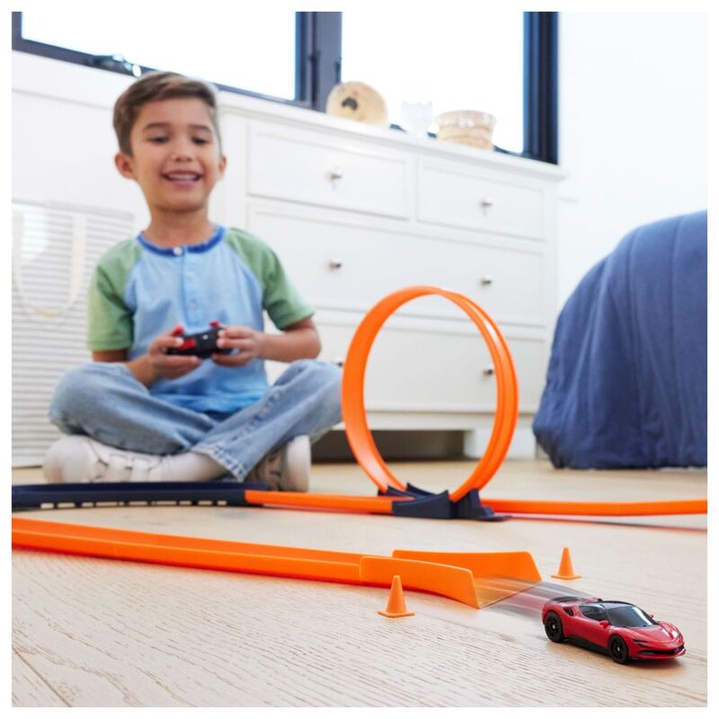 Take remote-control driving to the next level with the Hot Wheels RC 1:64 scale Ferrari SF90 Stradale Assetto Fiorano. Featuring authentic details and iconic styling, this RC can race on and off Hot Wheels tracks and has a booster button to speed through loops and stunts. (Hot Wheels track sold separately.) The full-function remote control has a frequency of 2.4 GHz to prevent interference when challenging other racers. Colors and decorations may vary.