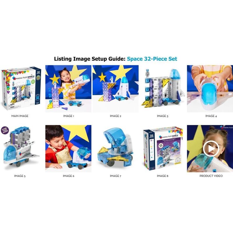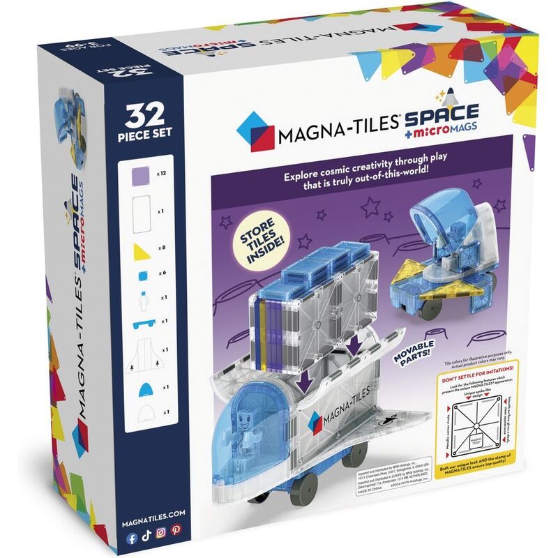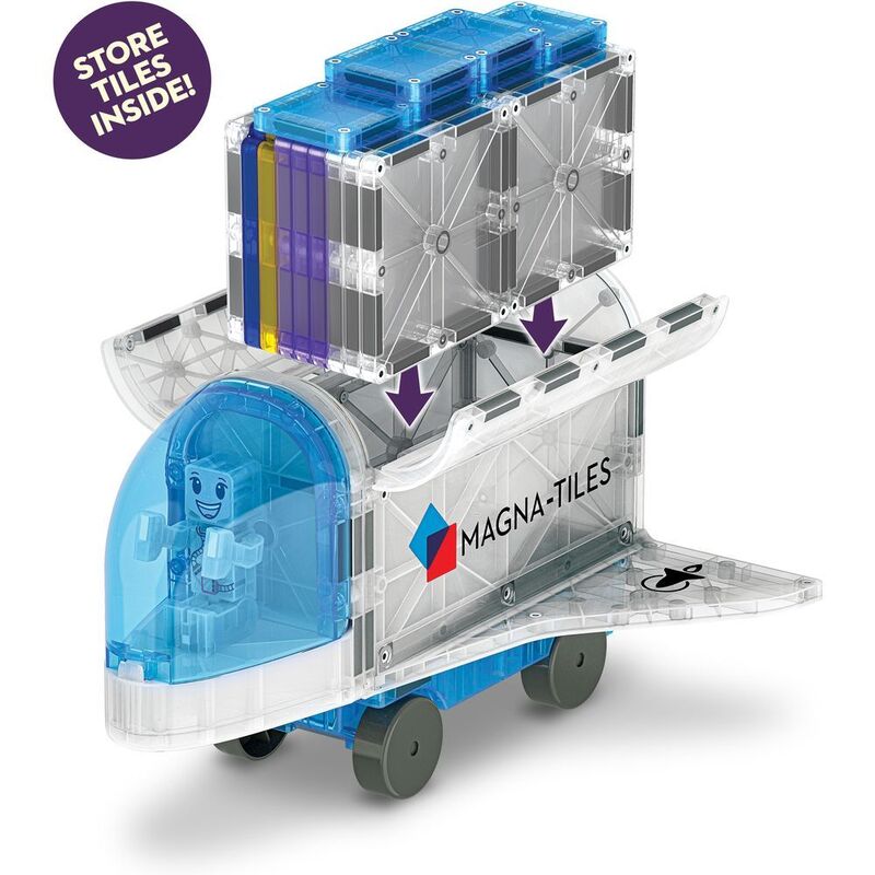Interstellar imaginations are over the moon with the MAGNA-TILES® Space set! Blast off into cosmic creativity and discover new ways to play with the one-of-a-kind Space Shuttle that conveniently stores all pieces after play. Enjoy the thrills of learning through play at light speed, with this STEAM-centric space adventure. Future astronauts everywhere agree: MAGNA-TILES® Space is truly an out-of-this-world building experience!Includes first-of-its-kind Shuttle with ample storage for all Space set pieces.Encourages children to learn through play, exploring cause and effect and other logic principles, while fostering the development of hand-eye coordination and fine motor skills.Makes a great gift for space-loving kids ages 3+.Add MAGNA-TILES® Classic sets to the fun and build out an entire space station!