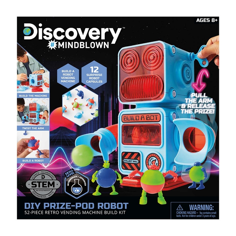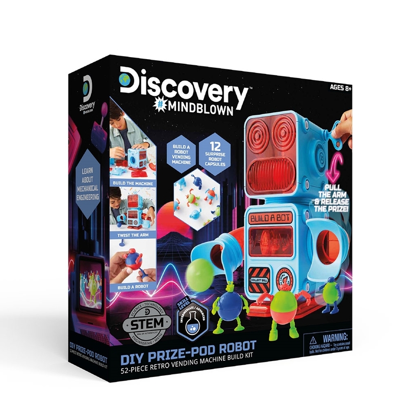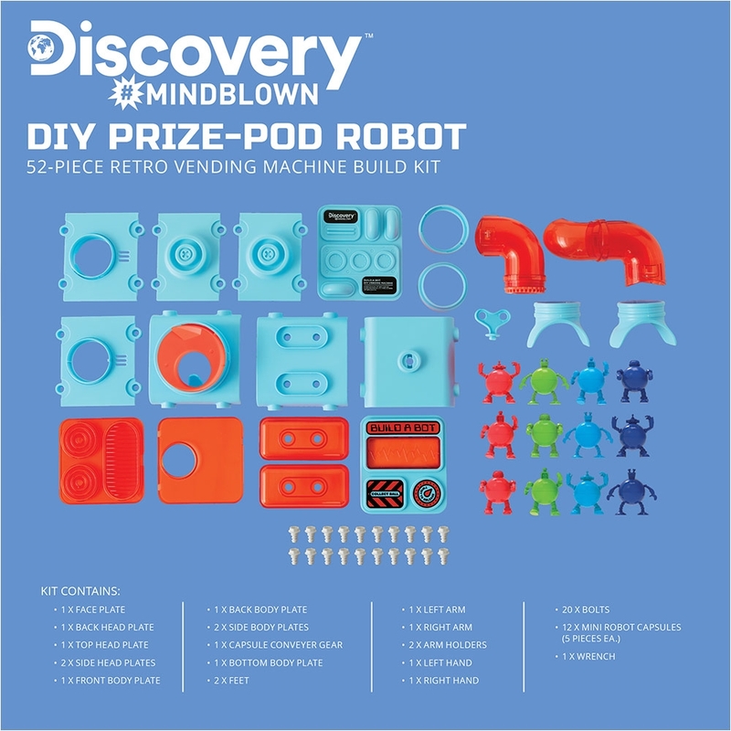 Unveiling the Discovery Diy Prize-Pod Robot - A Retro 45-Piece Vending Machine Build KitLooking for a new way to inspire your child's curiosity and imagination? Look no further than the Diy Prize-Pod Robot! This 45-piece build kit is designed to encourage STEM (science, technology, engineering, and math) learning and creative play.