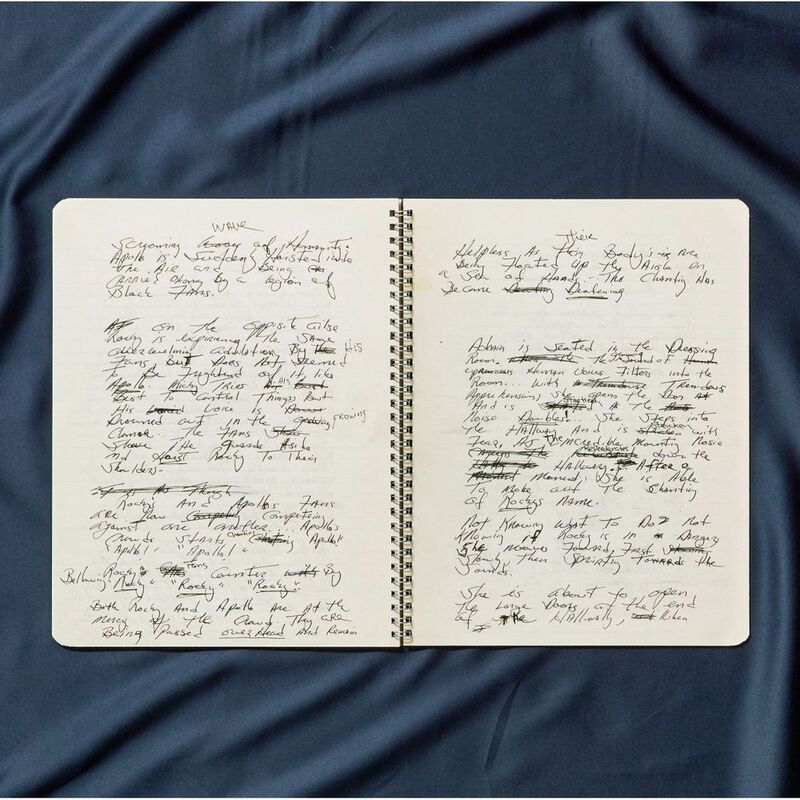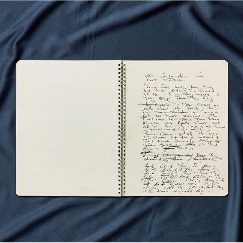 The book includes a print of Sylvester Stallone's Finding Rocky (1975), a painting he completed before writing the script. It was, for Stallone, "the genesis of Rocky." Also included is a facsimile of Sylvester Stallone's handwritten notebook for Rocky (circa 1975), which details dialogue, scenes, and ideas for the film, as well as the original unused ending. Stallone: "This is where all the ideas were coming out and the way I would write them."