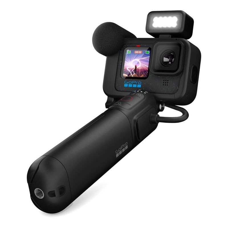The HERO12 Black Creator Edition is an all-in-one content capturing powerhouse that makes vlogging, filmmaking and live streaming easier than ever. Packing pro-quality 5.3K60 video and Emmy® Award-winning HyperSmooth 6.0 video stabilization, it puts all the tools you need to tell your story in the palm of your hand. It features High Dynamic Range (HDR) video and photo, a variety of aspect ratios (including full frame 8:7) and 10-bit encoding with GP-Log to deliver the best footage possible and maximum post-production flexibility. The versatile battery grip delivers over 5 hours of 4K recording time per charge1 and features built-in buttons that let you comfortably control the camera during long shoots. This complete system also has a directional microphone that reduces ambient noise, Bluetooth audio for use with your wireless mic, an LED light and multiple options for transferring footage including wireless, wired and with your SD card.