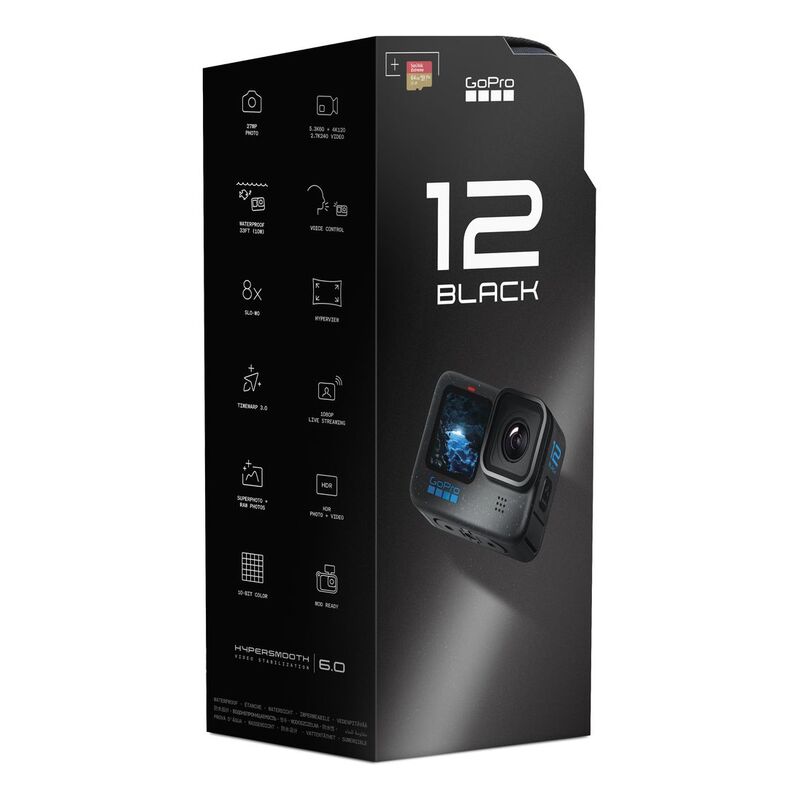 The best HERO camera we’ve ever made — HERO12 Black takes GoPro’s best-in-class image quality to the next level with new HDR (High Dynamic Range) 5.3K and 4K video, upgraded HyperSmooth 6.0 video stabilization and an industry-leading 177° field-of-view with Max Lens Mod 2.0. Other new features include a totally redesigned power management system for improved thermal performance and up to 2x longer runtimes, and Bluetooth audio support for Apple AirPods and other headphones to record sound and give remote voice commands. There are also pro-level features like wirelessly synchronizing multiple HERO12s via timecode, advanced color controls, and more. HERO12 wraps all of this into GoPro’s legendary waterproof, ultra-rugged design to ensure you get the shot, no matter the environment.