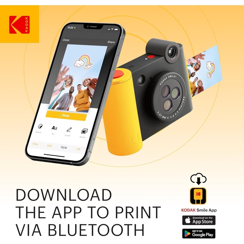 Kodak Smile+ 2x3 Digital Instant Camera with Mobile Photo Printer - Effect Lenses - Black