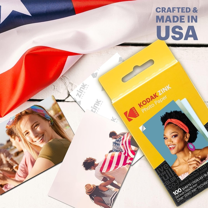 - Zink Zero ink sticky-backed photo paper; Crafted & made in the USA