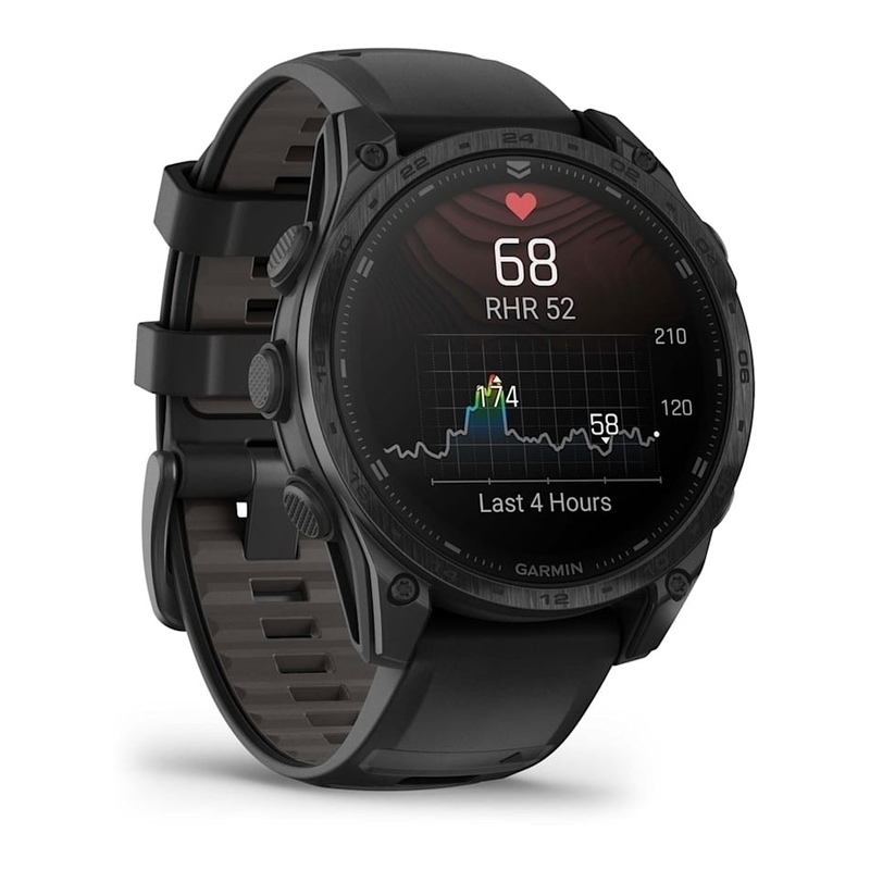 Garmin Tactix 8 47mm Amoled Sapphire Tactical Smartwatch With Applied Ballistics Ultralight Solver - Black DLC Titanium With Black/Pebble Grey Silicone Band