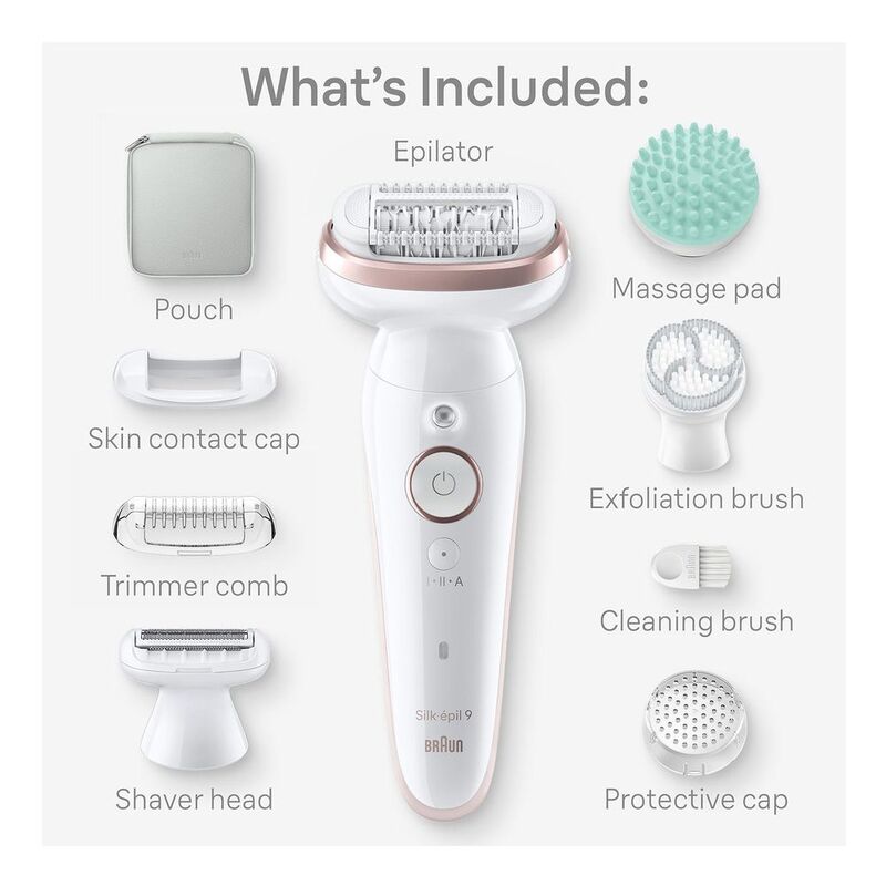 Braun Silk-épil 9 SkinSpa 9-080 Epilator Wet & Dry, Deep body exfoliation brush, Massage Cap lasting smooth skin, Pouch. +6 Extra