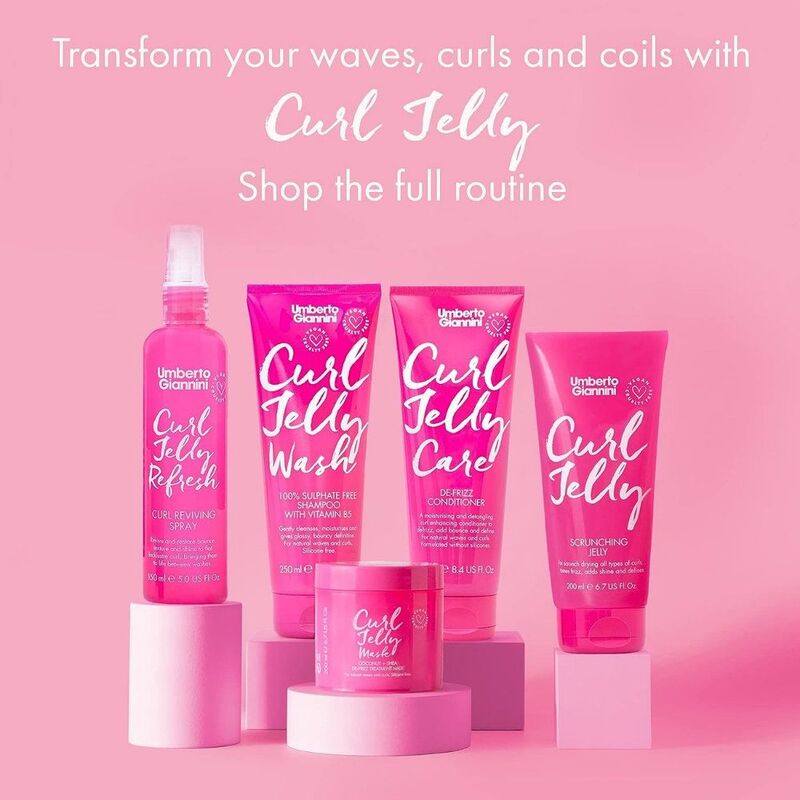 Our best selling Curl Jelly trio now in a 50ml x 3 travel starter kit. Wash and style your way to your glossiest, bounciest curls. Our best selling Curl Jelly shampoo and Conditioner will cleanse and moisturise curls without leaving them feeling stripped or dry. Follow with the styling powers of the iconic Curl Jelly Scrunching Jelly to add bounce and shine.