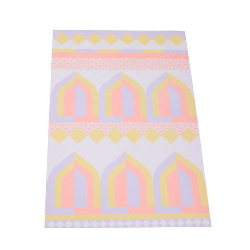 The Amman mat combines warm orange and purple arches, reflecting the historic, vibrant spirit of Jordan’s capital, where the setting sun casts a brilliant glow over the city’s ancient ruins.
