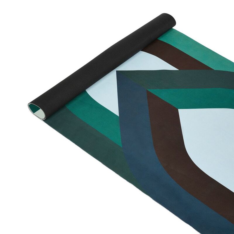 The Riyadh mat in rich green arches evokes the lush oases and verdant growth found amidst the vast desert landscape surrounding the heart of Saudi Arabia’s capital.