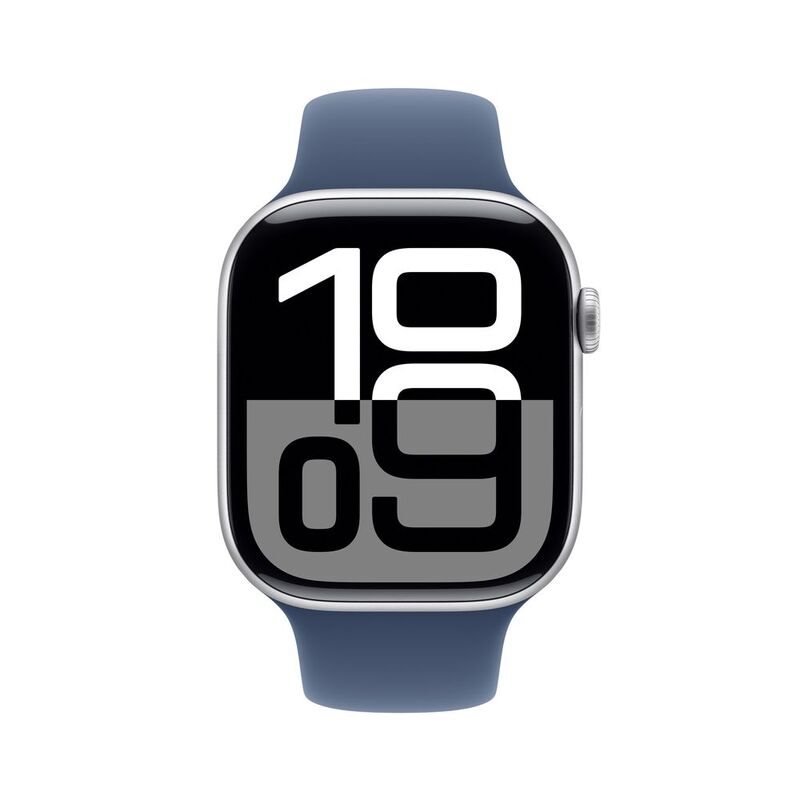 Apple Watch Series 10 GPS 46mm Silver Aluminium Case with Denim Sport Band - M/L
