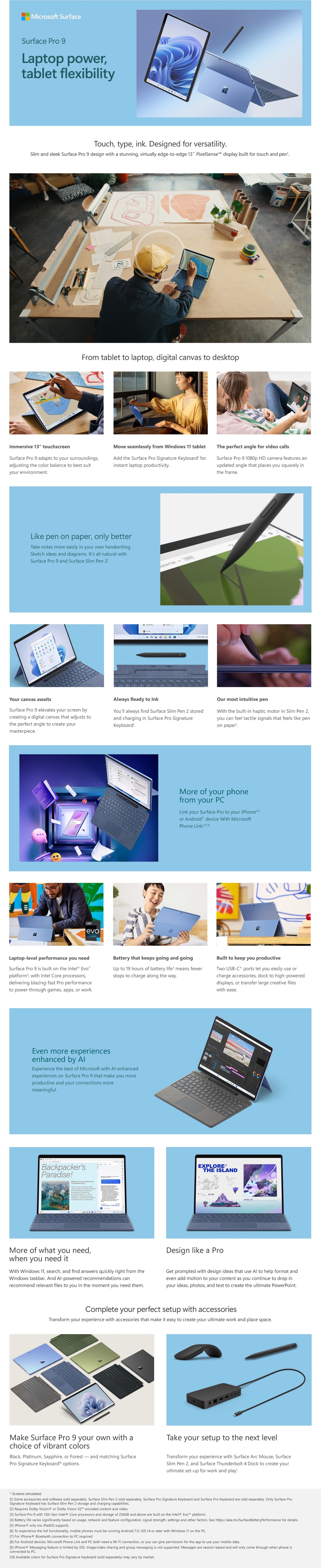 Surface Pro 9 gives you the tablet flexibility you want and the laptop performance and battery life² you need to move through your day — all in one ultra-portable device. Now with powerful new processors and optional high-speed 5G⁶ connectivity.