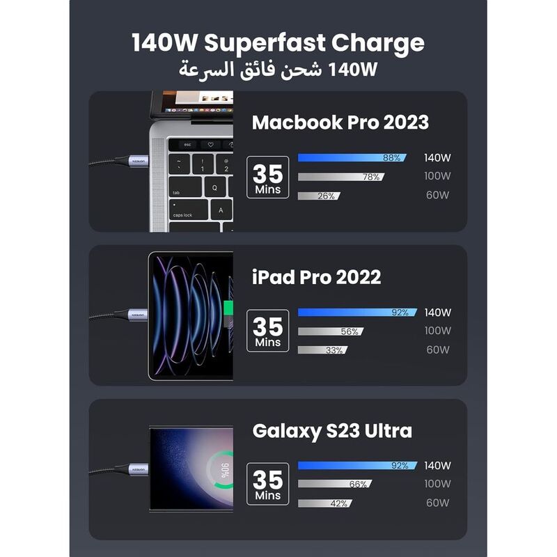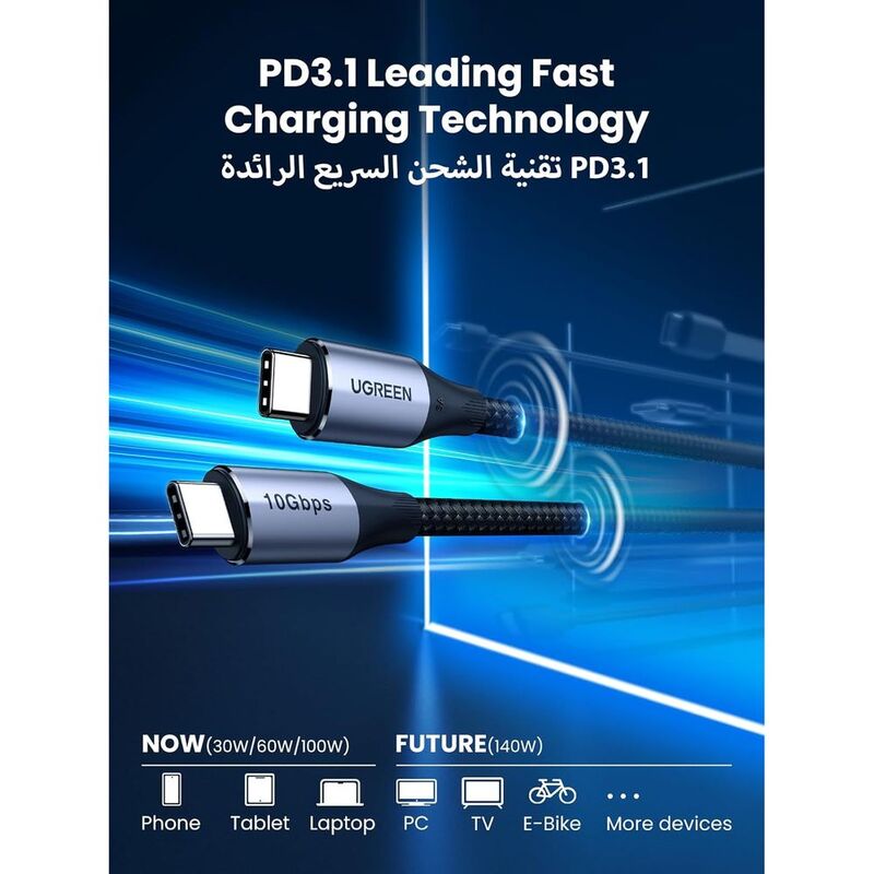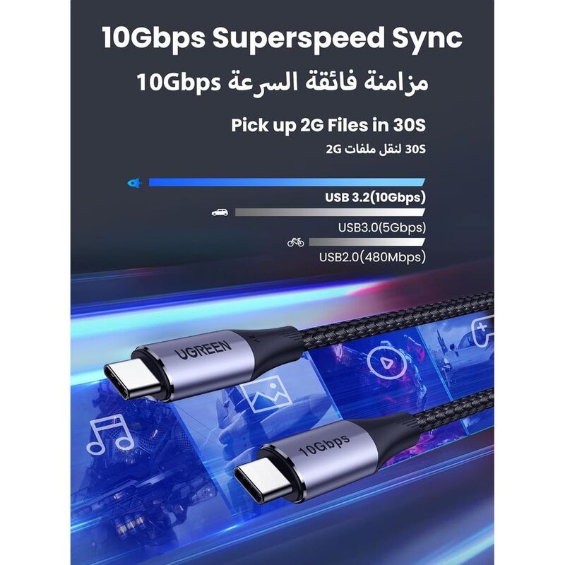 - 10Gbps Super Speed Data Transfer: UGREEN USB-c charging cable complies with USB 3.1 Gen 2 standard and provide hi-speed syncing at max 10 Gbps, transferring HD movie or large files in just seconds.