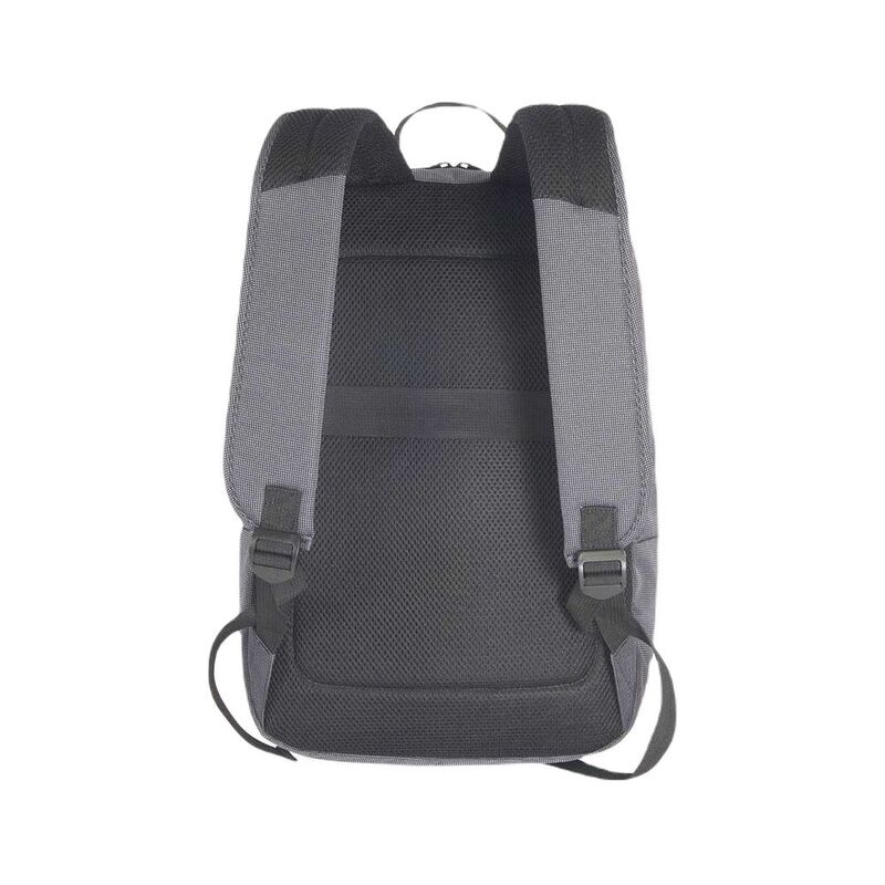 Backpack for Laptop 15.6" and MacBook Pro 16" made with fabric produced from recycled plastic. The convenient and roomy interior compartment features a protective pocket for your device. The adjustable, padded shoulder straps together with the ergonomic back, and external front pocket, make it convenient and useful for both work and leisure. Equipped with a trolley strap.