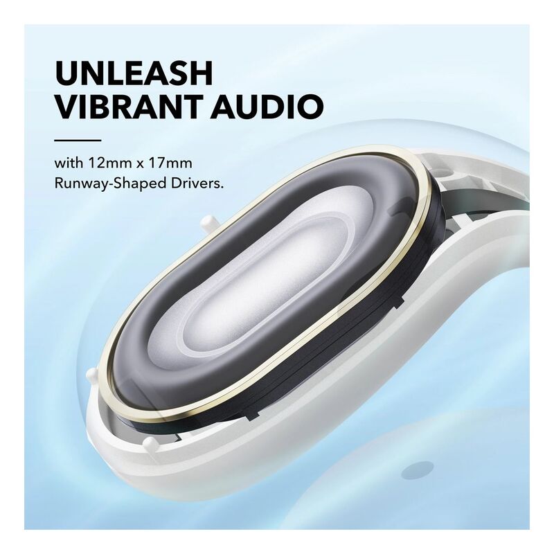 Soundcore C30i boasts expansive 12mm × 17mm racetrack drivers. Coupled with a titanium-coated diaphragm, you can enjoy clear audio, even with open-ear listening.