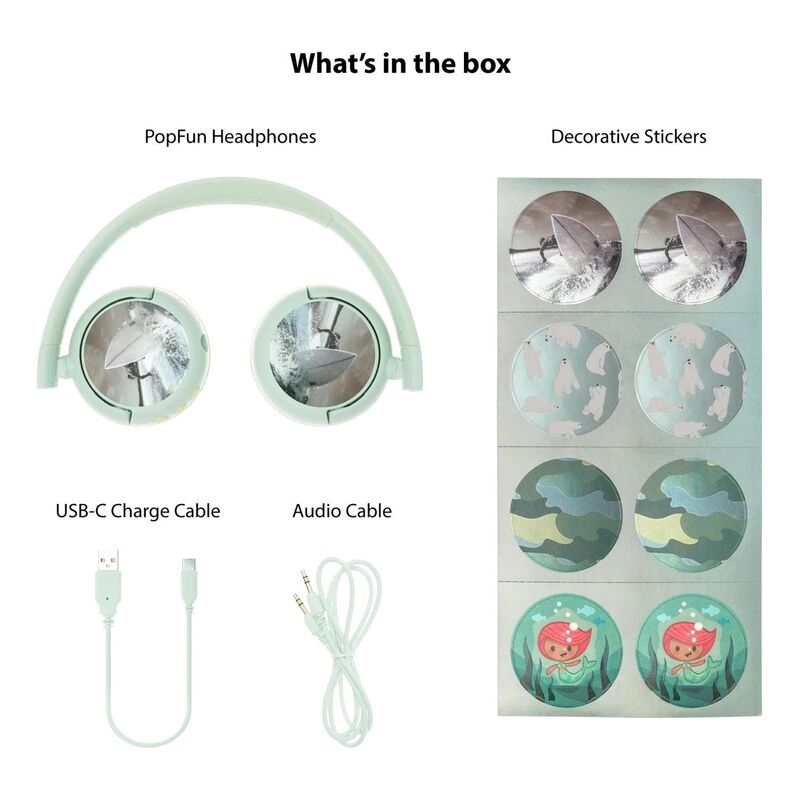 In bold dual-tone colors, the BuddyPhones POP Fun Bluetooth headphones deliver up to 24 hours of vibrant sounds for the enjoyment of bright young listeners. SafeAudio protects hearing by limiting maximum volume to 85dB, or 94dB for noisier surroundings.