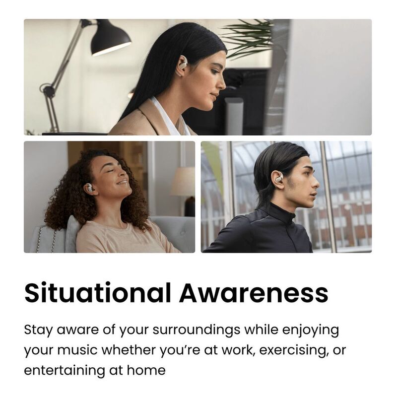 OpenFit adopts a non-in-ear design that can perceive ambient sound at all times. At only 8.3g per ear, you can wear them for extended periods without experiencing any swelling or pain. The breathable design ensures that you won't feel stuffy or enclosed while using them.