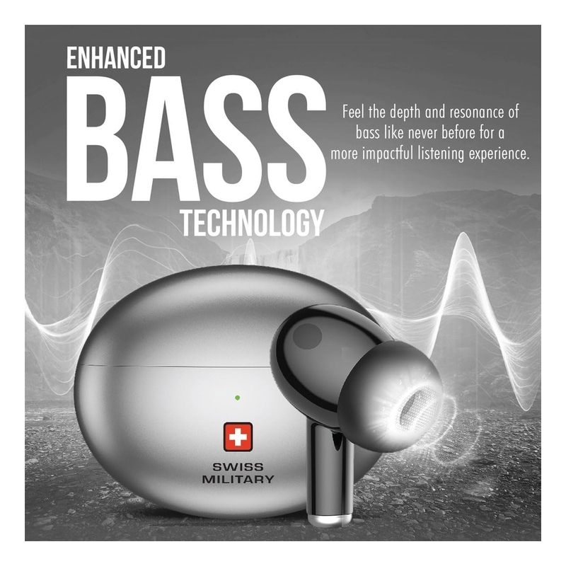 Swiss Military Wireless Charging Stereo Earbuds With ANC + ENC - Silver